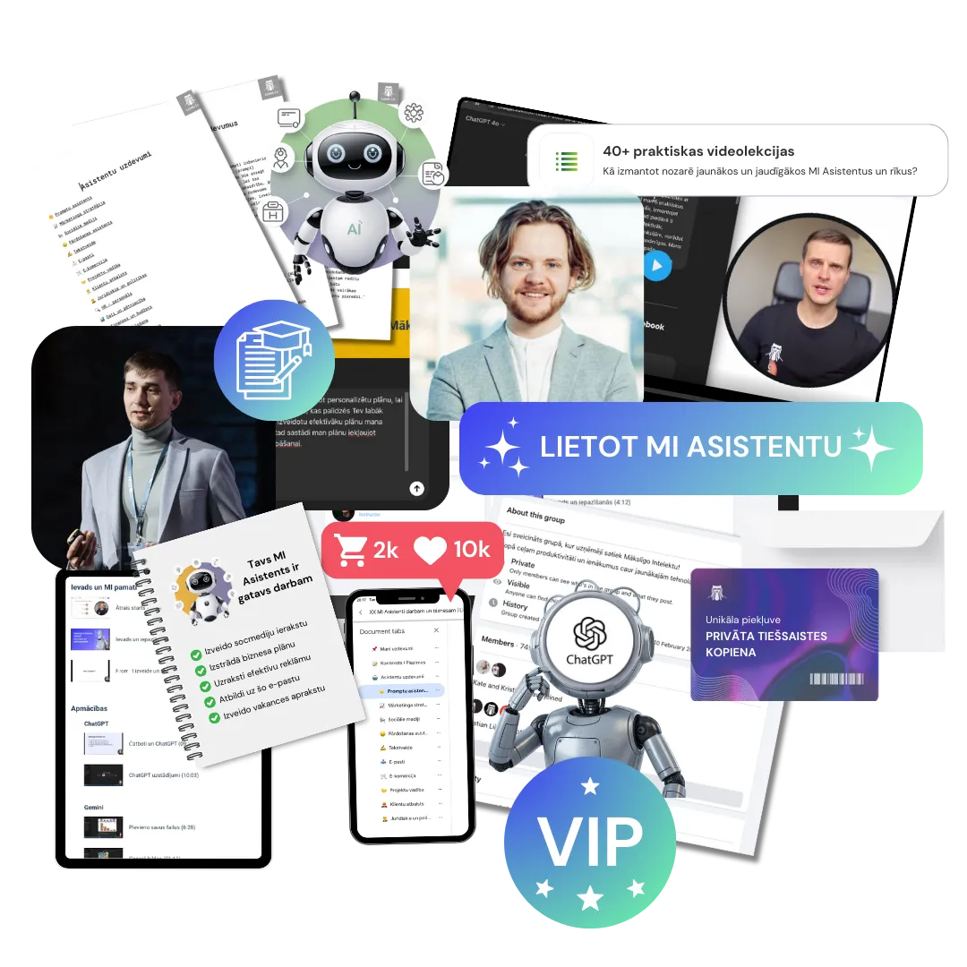 40+ praktiskas video lekcijas "MI darba un biznesam" (2 gadu piekļuve);